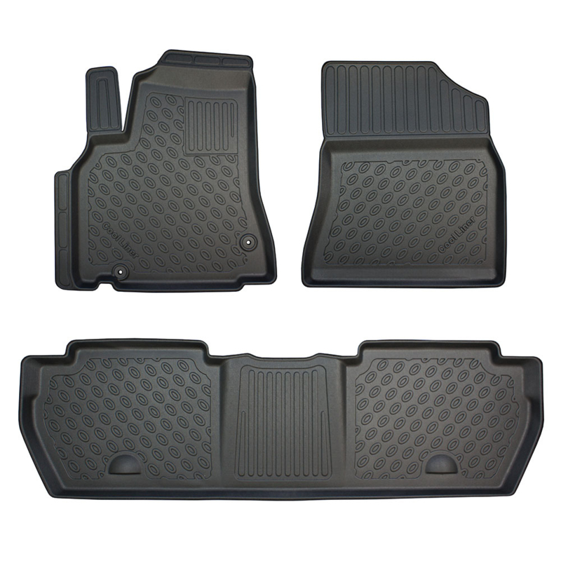 Rubberen schaalmatten op maat voor Berlingo II & Partner II (2008–2018). TPE-rubber, antislip, waterdicht, geurloos en duurzaam. Volledige set excl. 3e zitrij.